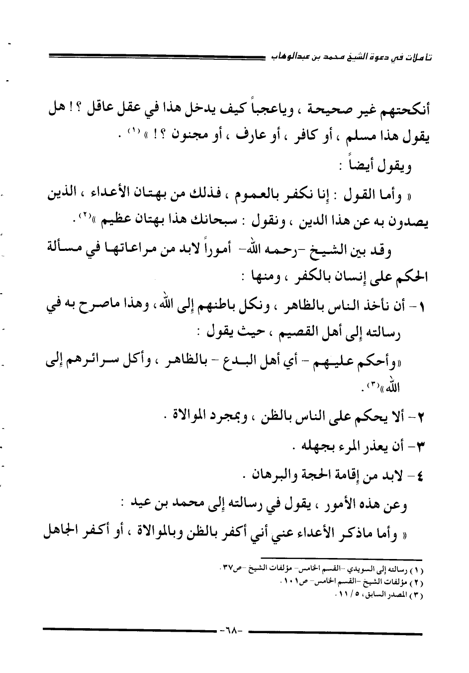 1 رسالته على السويدي -القسم الخامس- مؤلفات الشيخ - ص37.