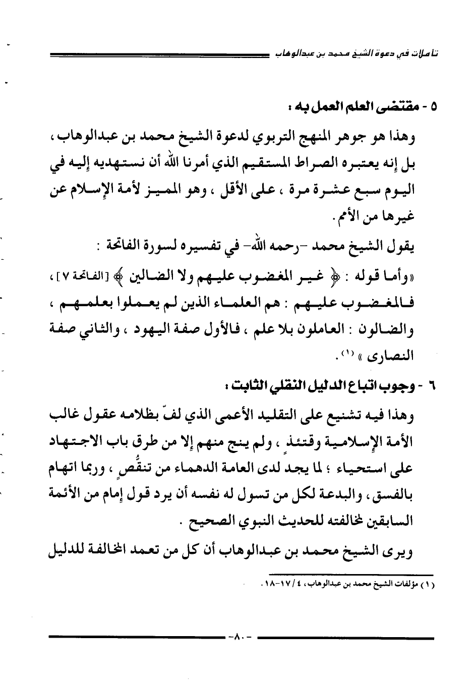 1 مؤلفات الشيخ محمد بن عبد الوهاب، 4/17-18.