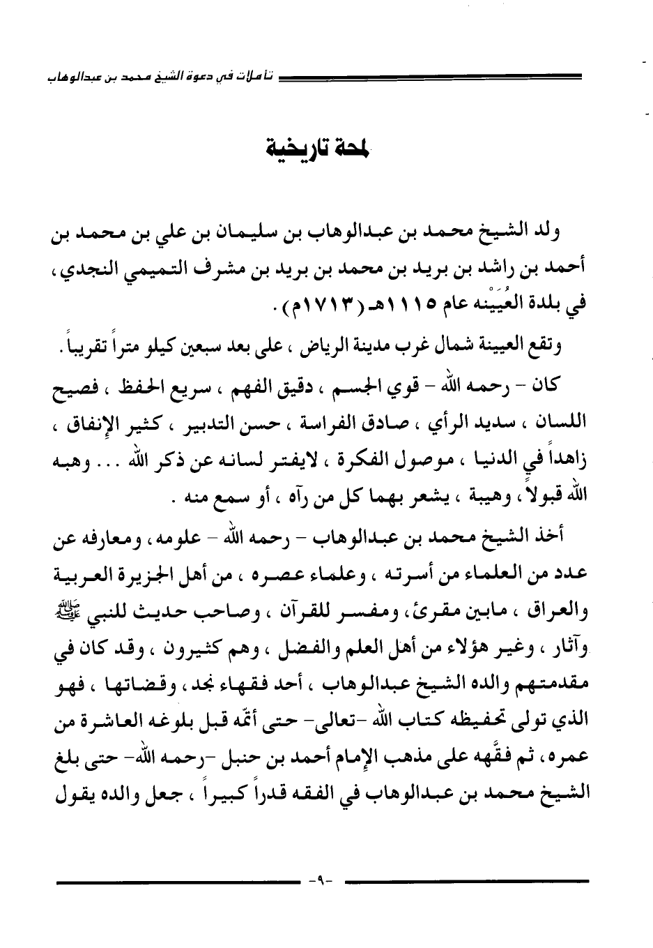 وبهذا الامتداد بدأت نواة الدعوة من حريملاء، إِلا أن سنة الله في الأنبياء، والمصلحين، لا تتغير على مرّ الدهور والعصور، بدءا من نوح وإِبراهيم -عليهما السلام- إِلى خاتم الرسل محمد ـ صلّى الله عليه وسلّم ـ وخلفائه،