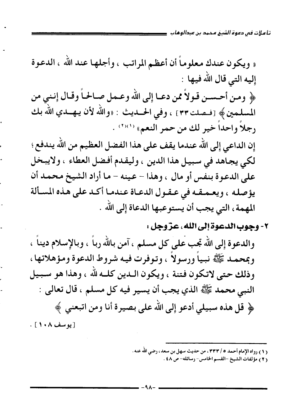 {قُلْ هَذِهِ سَبِيلِي أَدْعُو إِلَى اللَّهِ عَلَى بَصِيرَةٍ أَنَا وَمَنِ اتَّبَعَنِي} [يوسف: 108]