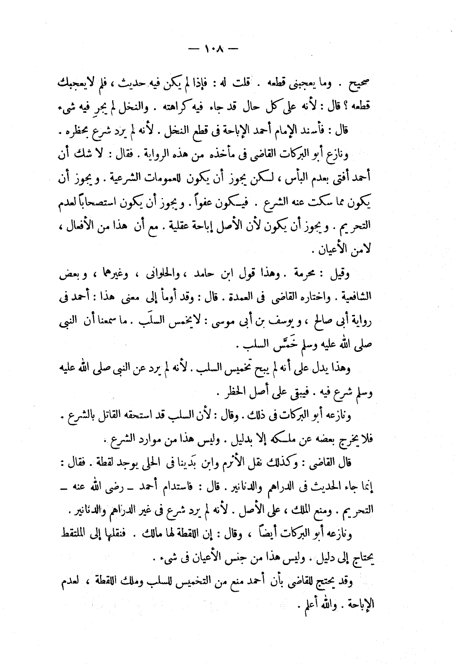 قال فأسند الإمام أحمد الإباحة فى قطع النخل لأنه لم يرد شرع بحظره