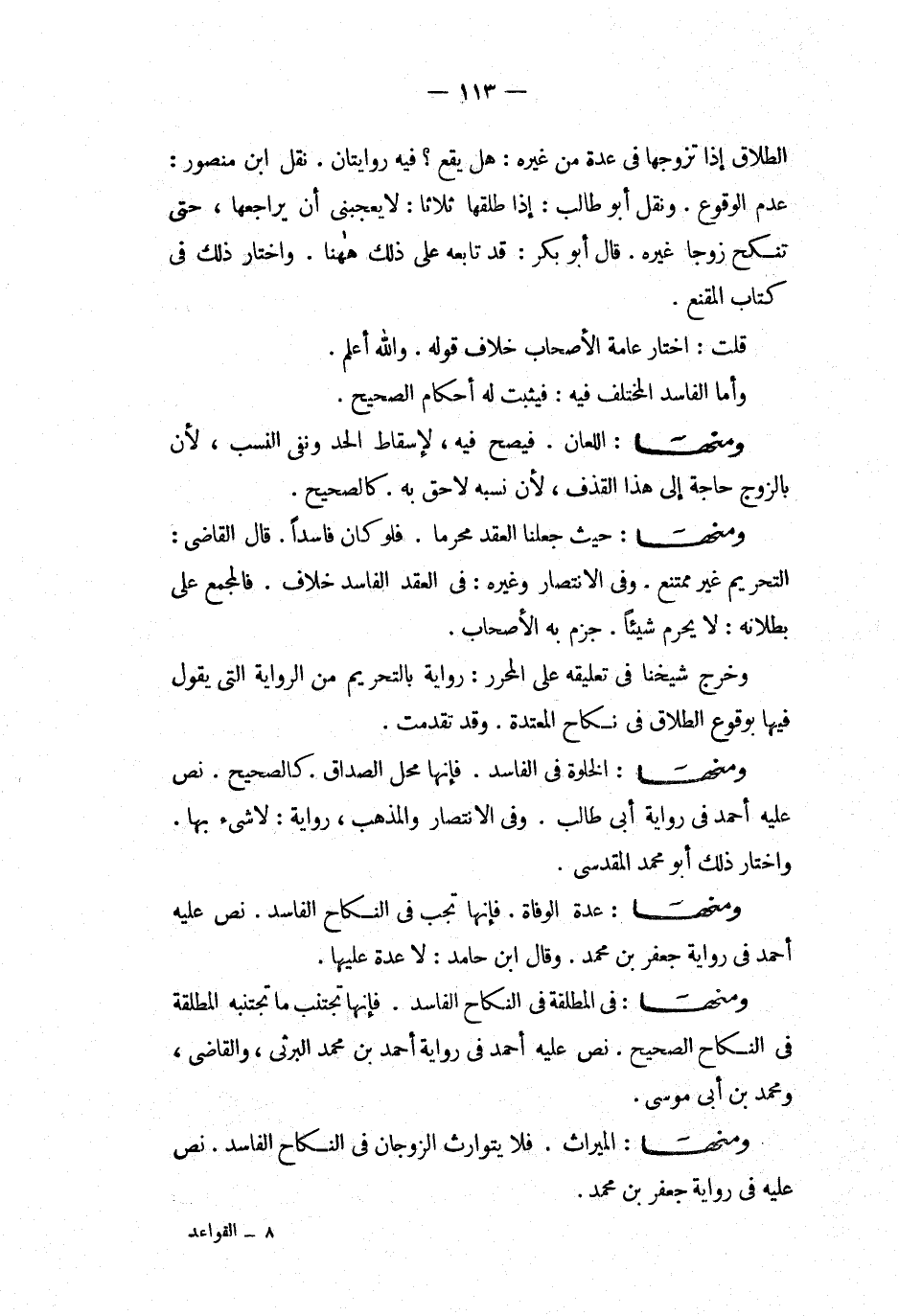ومنها فى المطلقة فى النكاح الفاسد فإنها تجتنب ما تجتنبه المطلقة فى النكاح الصحيح نص عليه أحمد فى رواية أحمد بن محمد البرثى والقاضى ومحمد بن أبى موسى