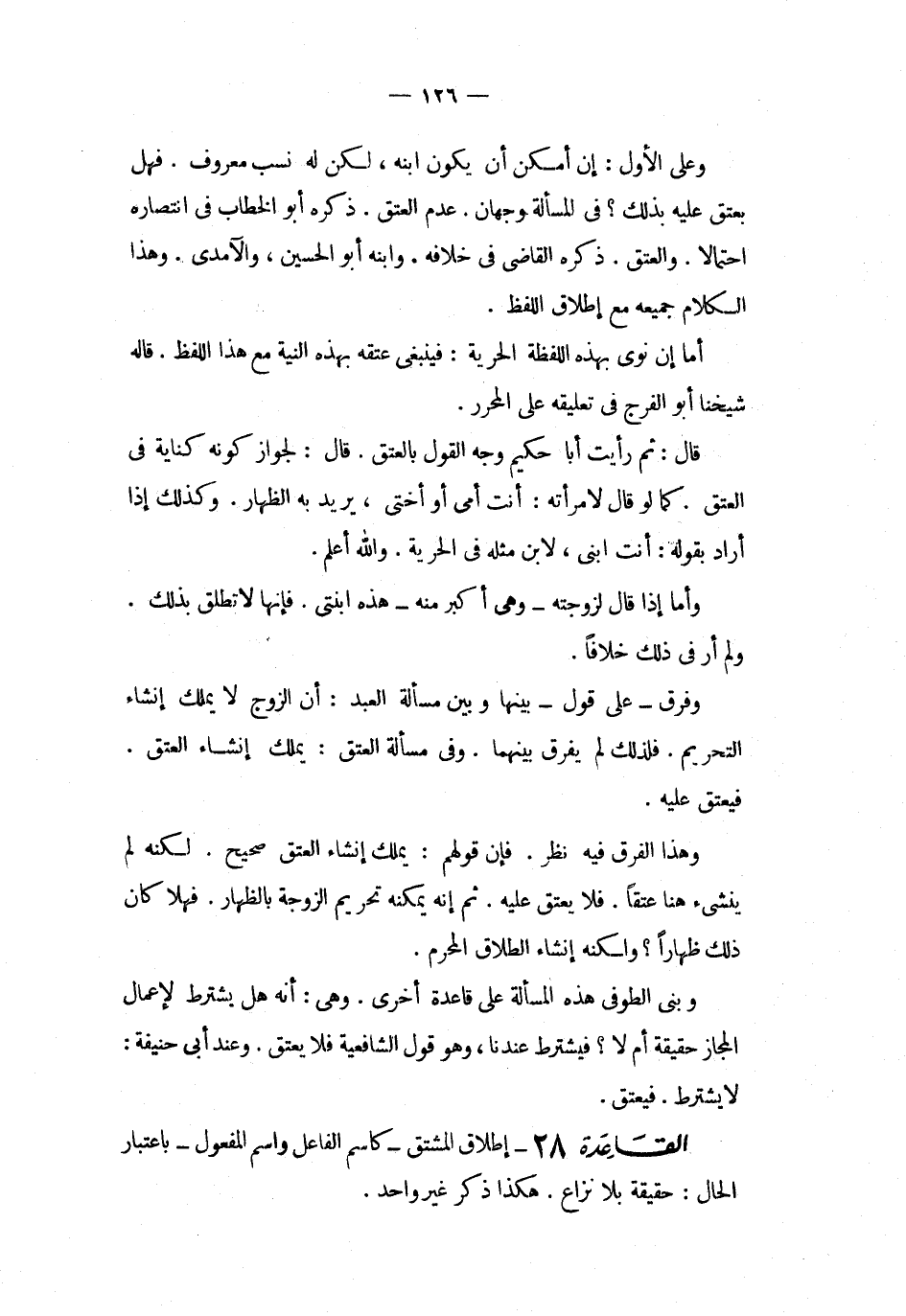القاعدة 28 إطلاق المشتق كاسم الفاعل واسم المفعول باعتبار الحال حقيقة بلا نزاع هكذا ذكر غير واحد