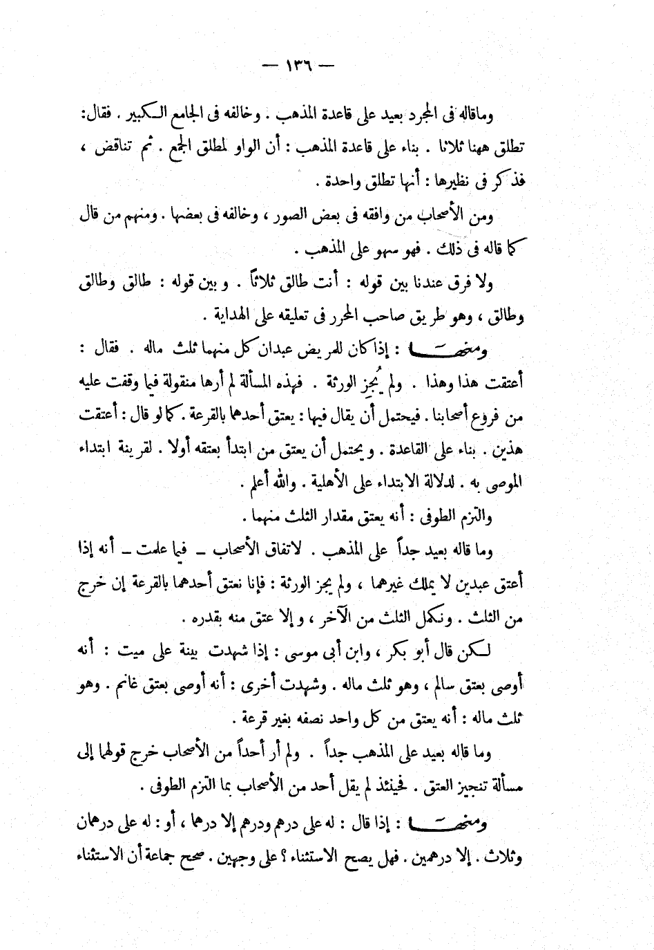ومنها إذا كان للمريض عبدان كل منهما ثلث ماله فقال أعتقت هذا وهذا ولم يجز الورثة فهذه المسألة لم أرها منقولة فيما وقفت عليه من فروع أصحابنا فيحتمل أن يقال فيها يعتق أحدهما بالقرعة كما لو قال أعتقت هذين بناء على القاعدة ويحتمل أن يعتق من ابتدأ بعتقه أولا لقرينة ابتداء الموصى به لدلالة الابتداء على الأهلية والله أعلم
