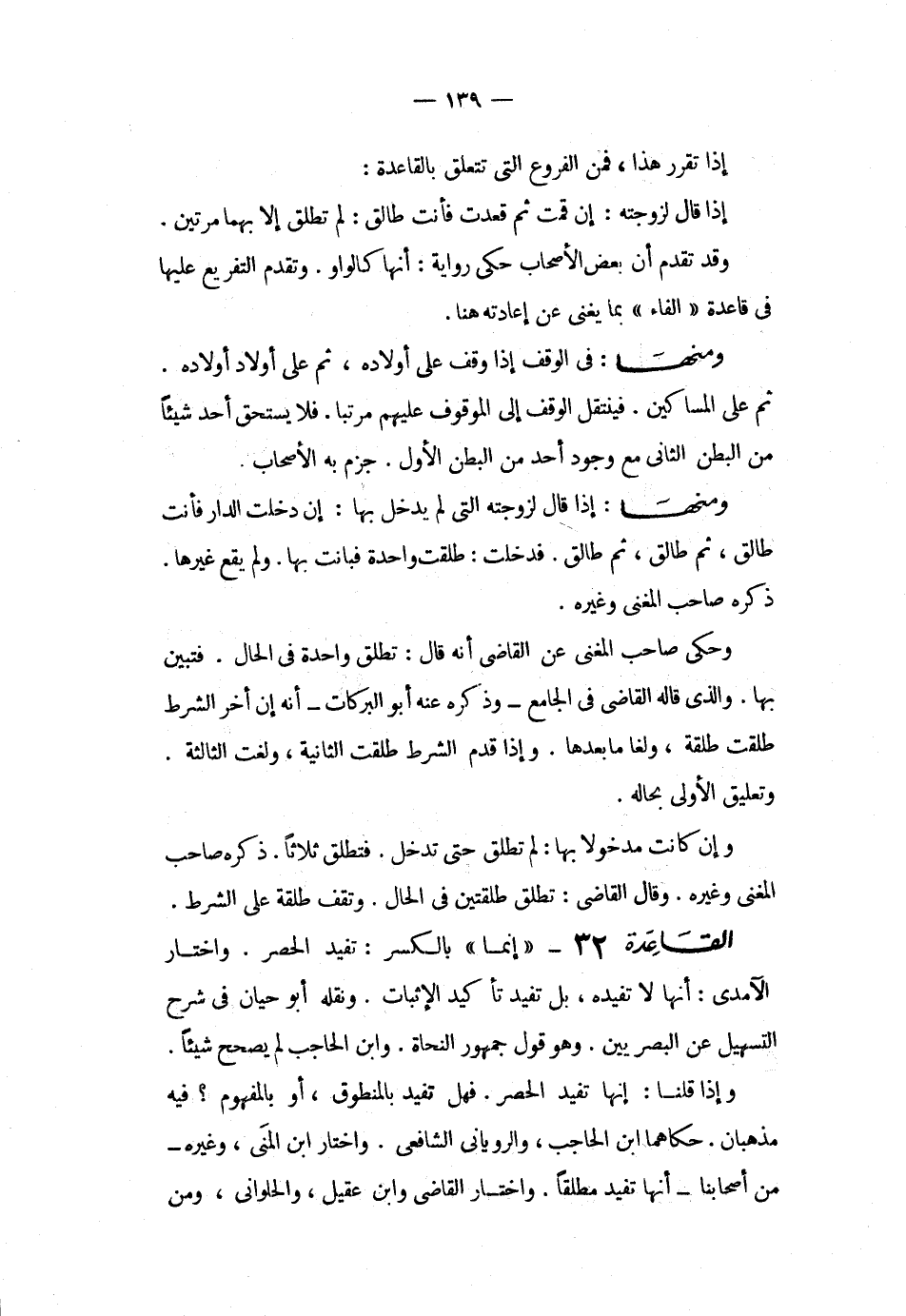 القاعدة 32 إنما بالكسر تفيد الحصر واختار الآمدى أنها لا تفيده بل تفيد تأكيد الإثبات ونقله أبو حيان فى شرح التسهيل عن البصريين وهو قول جمهور النحاة وابن الحاجب لم يصحح شيئا