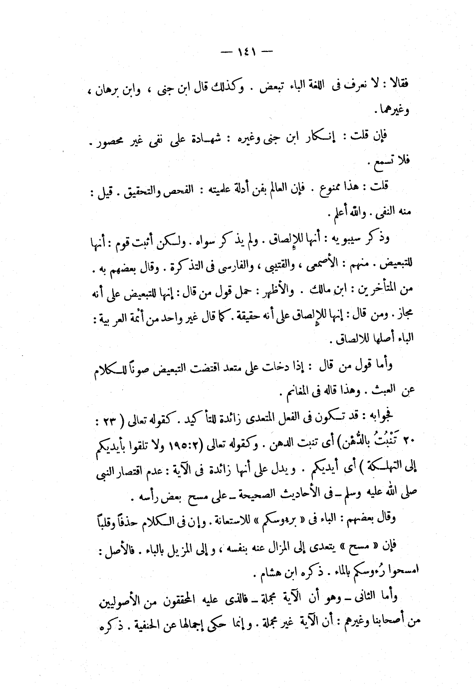 فقالا لا نعرف فى اللغة الباء تبعض وكذلك قال ابن جنى وابن برهان وغيرهما