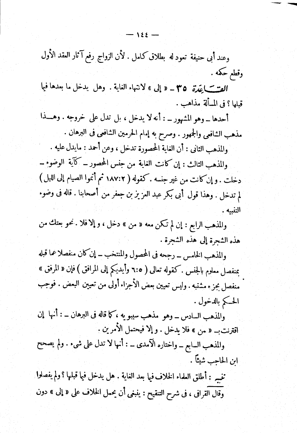 القاعدة 35 إلى لانتهاء الغاية وهل يدخل ما بعدها فيما قبلها فى المسألة مذاهب