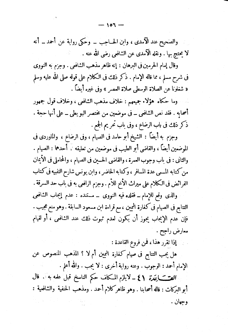 القاعدة 41 لا يلزم المكلف حكم الناسخ قبل علمه به قال أبو البركات قاله أصحابنا وهو ظاهر كلام أحمد ومذهب الحنفية والشافعية وجهان