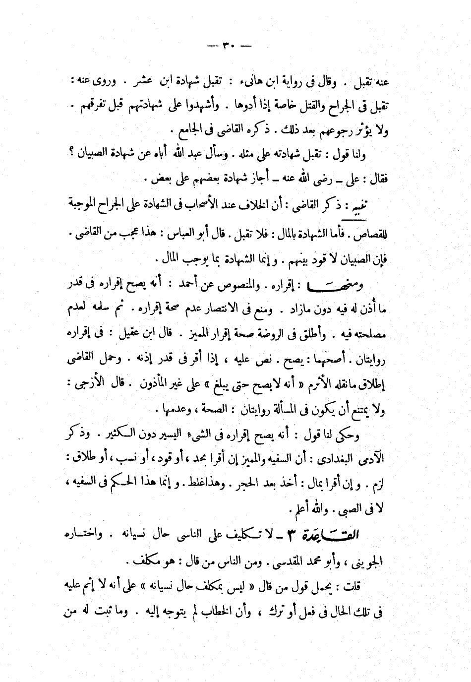 القاعدة 3 لا تكليف على الناسى حال نسيانه واختاره الجوينى فى تلك الحال فى فعل أو ترك وأن الخطاب لم يتوجه إليه وما ثبت له من