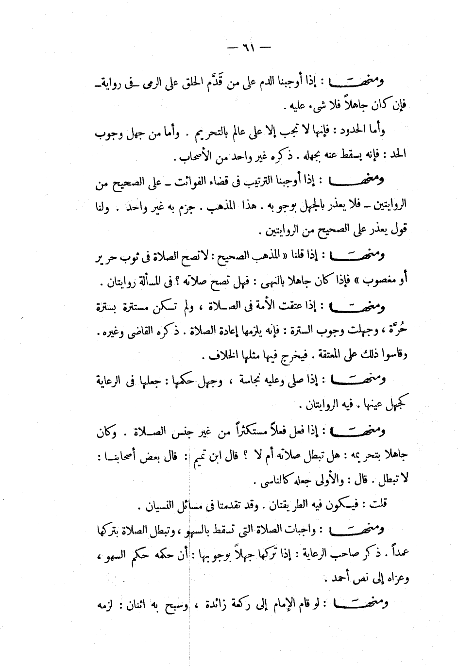 ومنها إذا أوجبنا الترتيب فى قضاء الفوائت على الصحيح من الروايتين فلا يعذر بالجهل بوجوبه هذا المذهب جزم به غير واحد ولنا قول يعذر على الصحيح من الروايتين