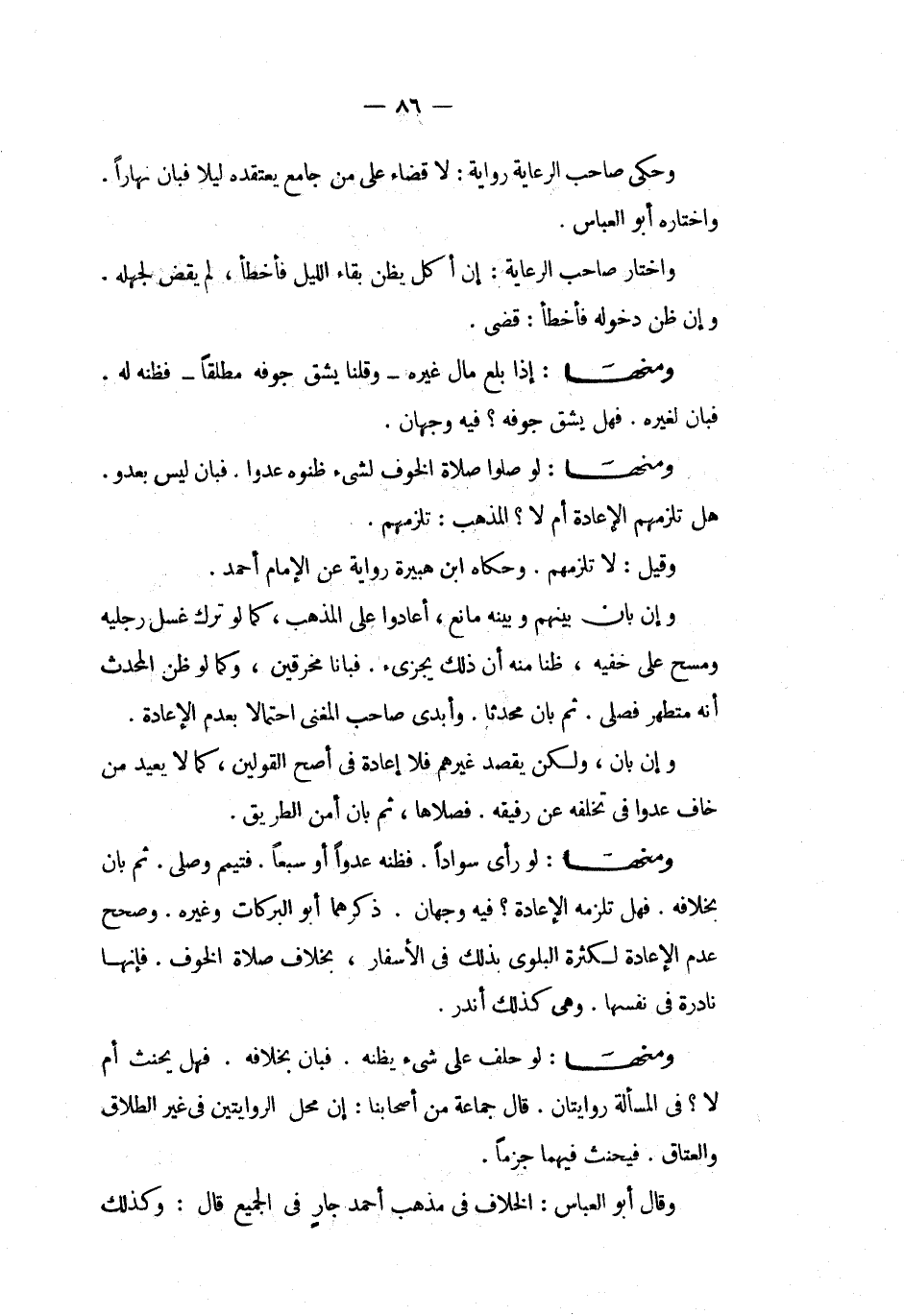 وقال أبو العباس الخلاف فى مذهب أحمد جار فى الجميع قال وكذلك