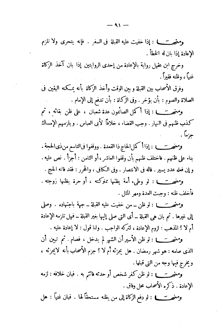 ومنها إذا خفيت عليه القبلة فى السفر فإنه يتحرى ولا تلزم الإعادة إذا بان له الخطأ