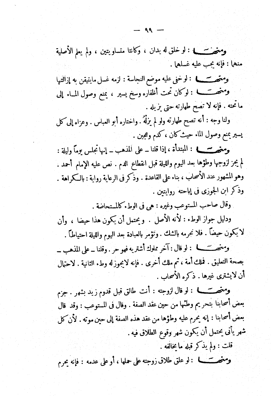 ومنها لو قال لزوجته أنت طالق قبل قدوم زيد بشهر جزم بعض أصحابنا بتحريم وطئها من حين عقدة الصفة وقال فى المستوعب وقد قال بعض أصحابنا إنه يحرم عليه وطؤها من عقد هذه الصفة إلى حين موته لأن كل شهر يأتى يحتمل أن يكون شهر وقوع الطلاق فيه