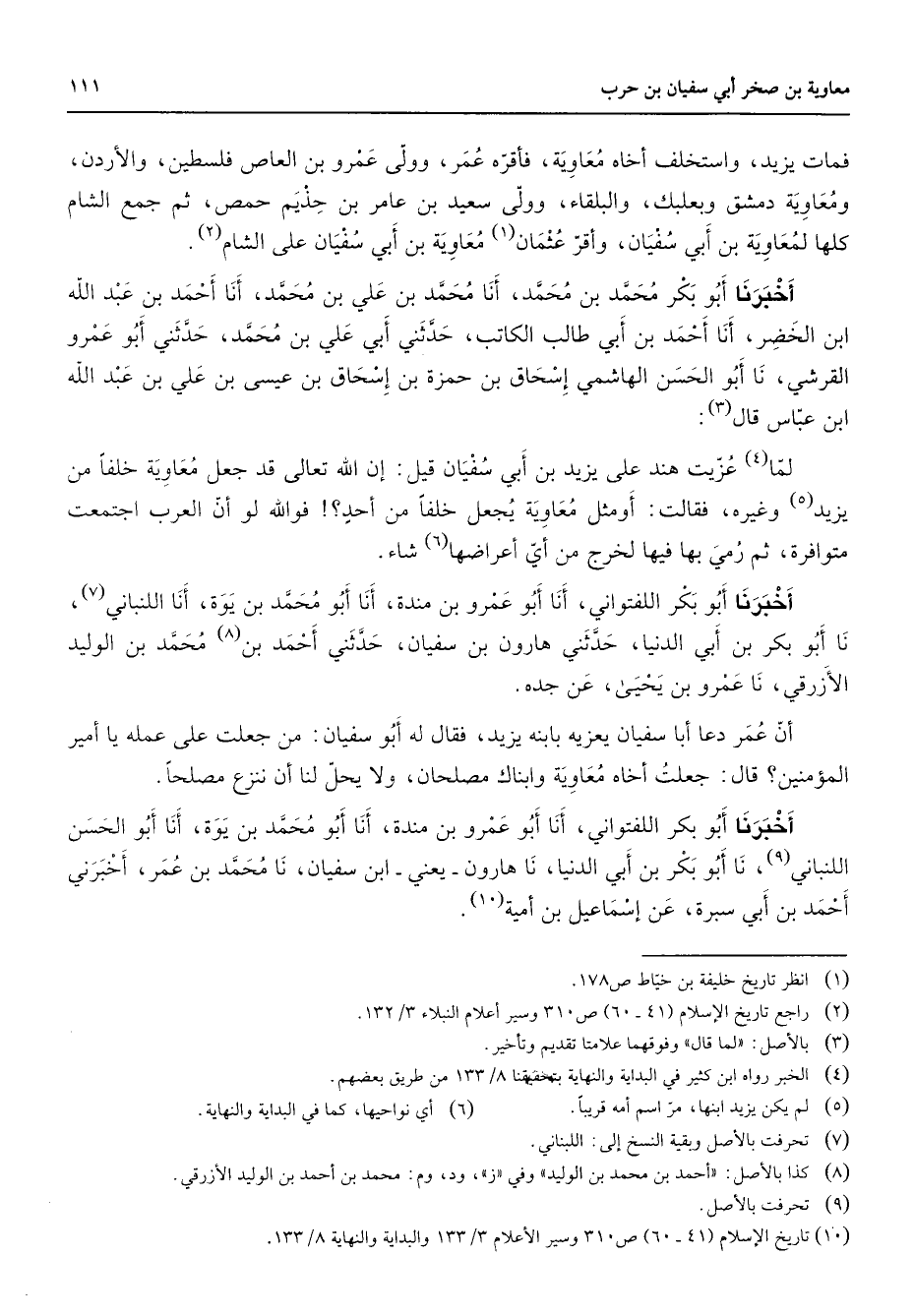 (2) راجع تاريخ الاسلام (41 - 60) ص 310 وسير أعلام النبلاء 3 / 132