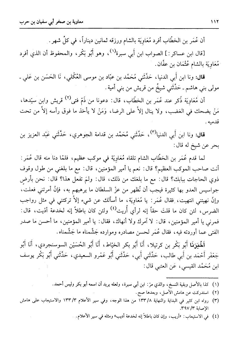 (3) رواه ابن كثير في البداية والنهاية 8 / 133 من هذا الوجه وفي سير الاعلام 3 / 133 والاستيعاب على هامش الاصابة 3 / 397
