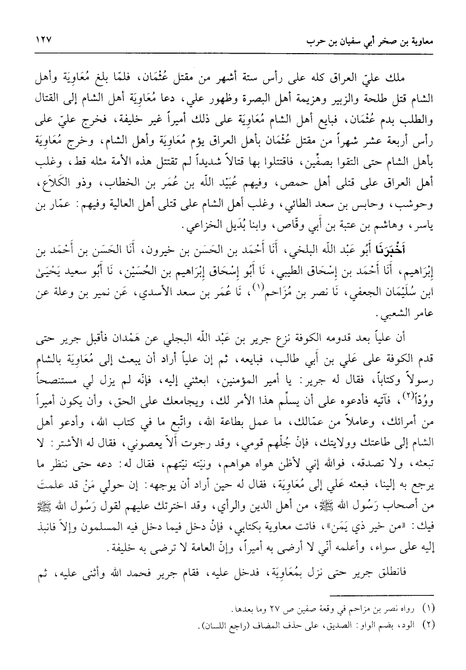 (1) رواه نصر بن مزاحم في وقعة صفين ص 27 وما بعدها