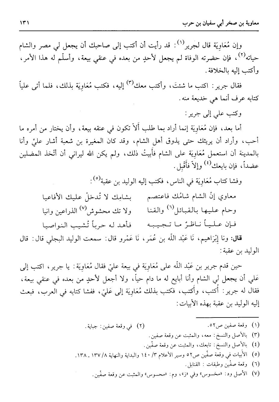 (5) الابيات في وقعة صفين ص 52 وسير الاعلام 3 / 140 والبداية والنهاية 8 / 137 - 138