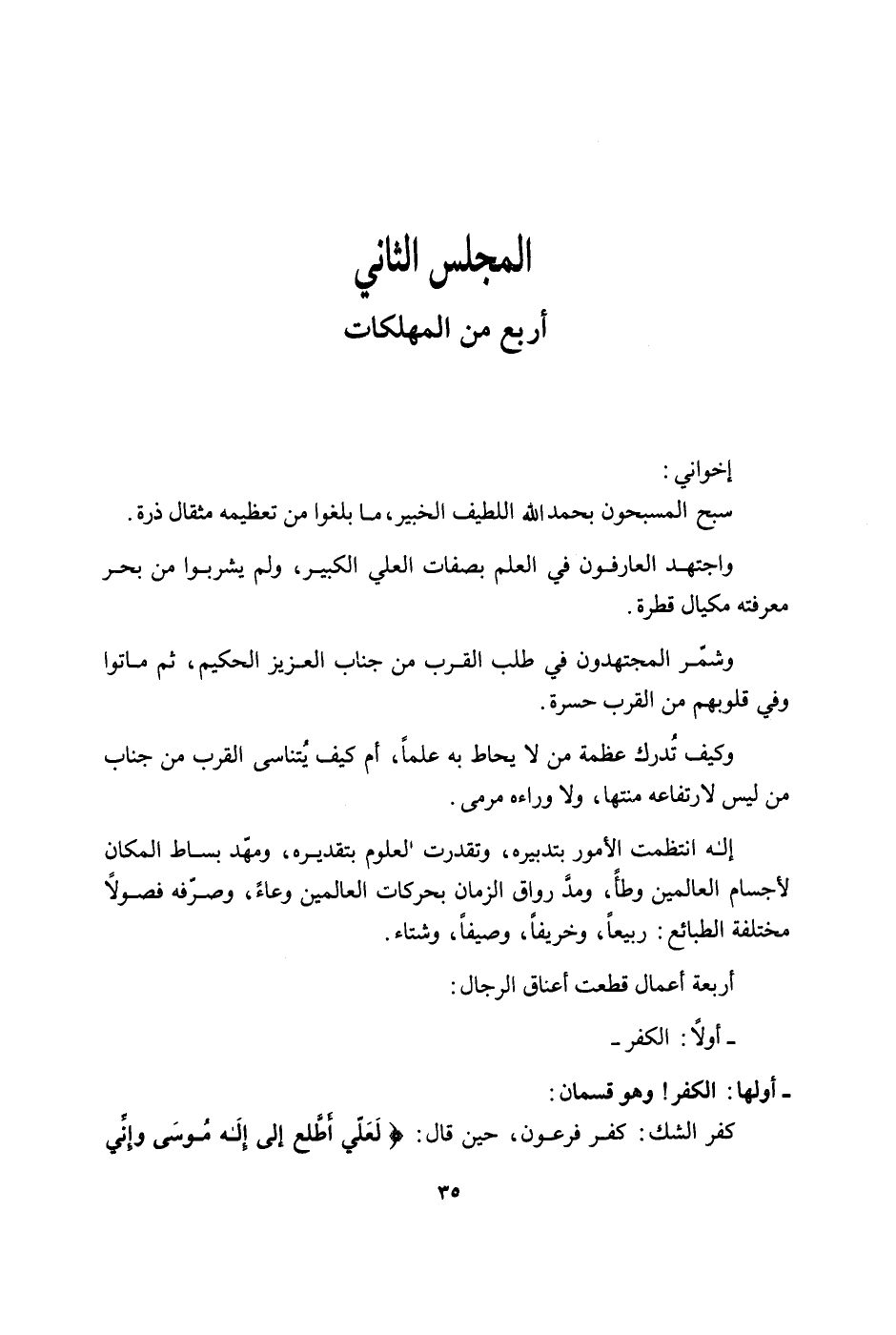 الْمجْلس الثَّانِي ارْبَعْ من المهلكات