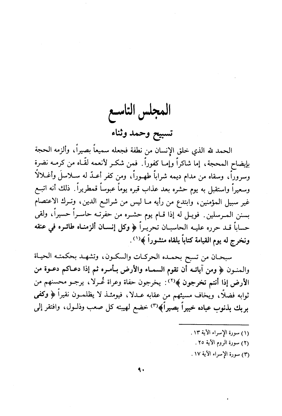 الْمجْلس التَّاسِع تَسْبِيح وَحمد وثناء