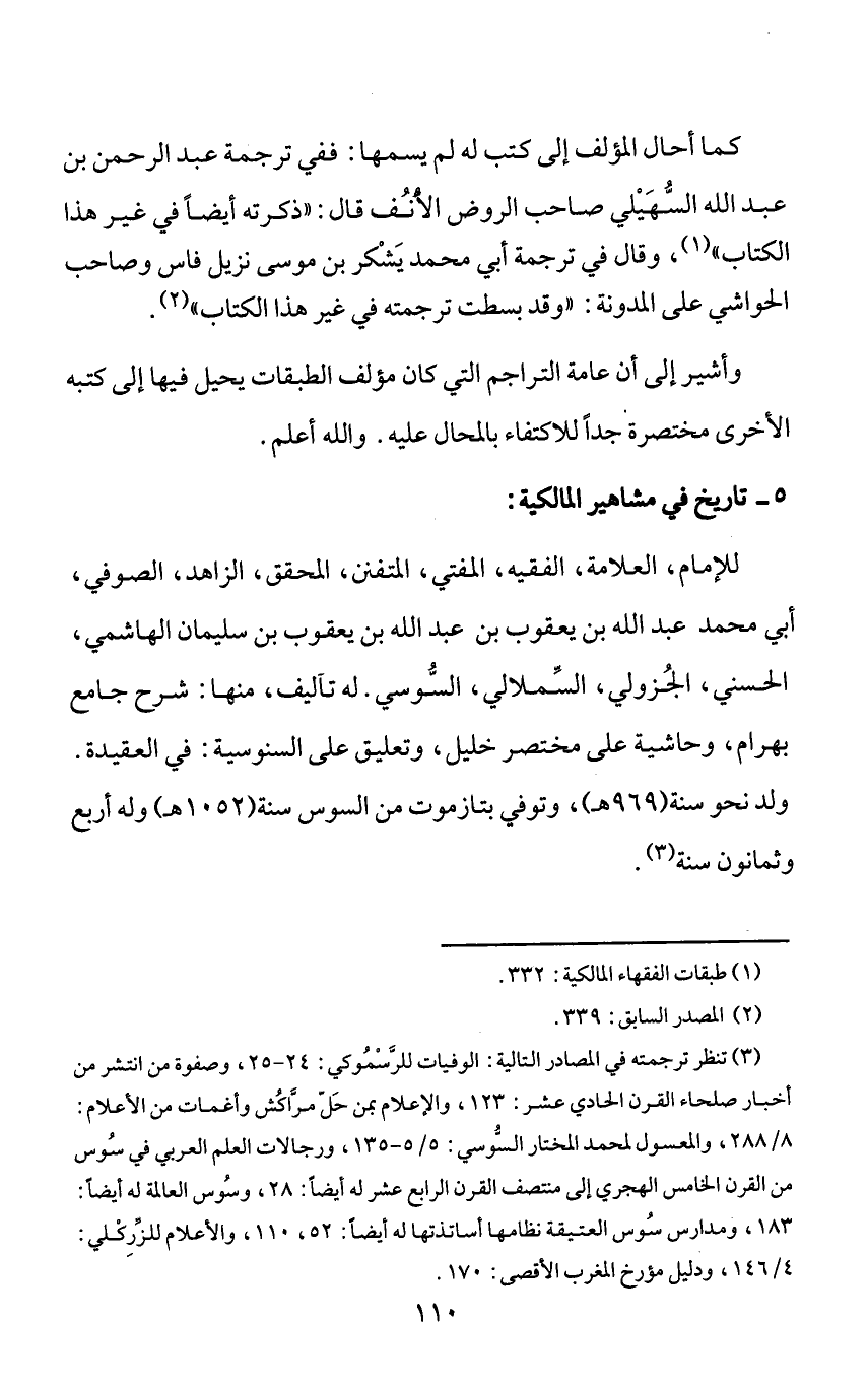 (¬3) تنظر ترجمته في المصادر التالية: الوفيات للرّسموكي: 24 - 25، وصفوة من انتشر من أخبار صلحاء القرن الحادي عشر: 123، والإعلام بمن حلّ مرّاكش وأغمات من الأعلام: 8/ 288، والمعسول لمحمد المختار السّوسي: 5/ 5 - 135، ورجالات العلم العربي في سوس من القرن الخامس الهجري إلى منتصف القرن الرابع عشر له أيضا: 28، وسوس العالمة له أيضا: 183، ومدارس سوس العتيقة نظامها أساتذتها له أيضا: 52، 110، والأعلام للزّركلي: 4/ 146، ودليل مؤرخ المغرب الأقصى: 170.