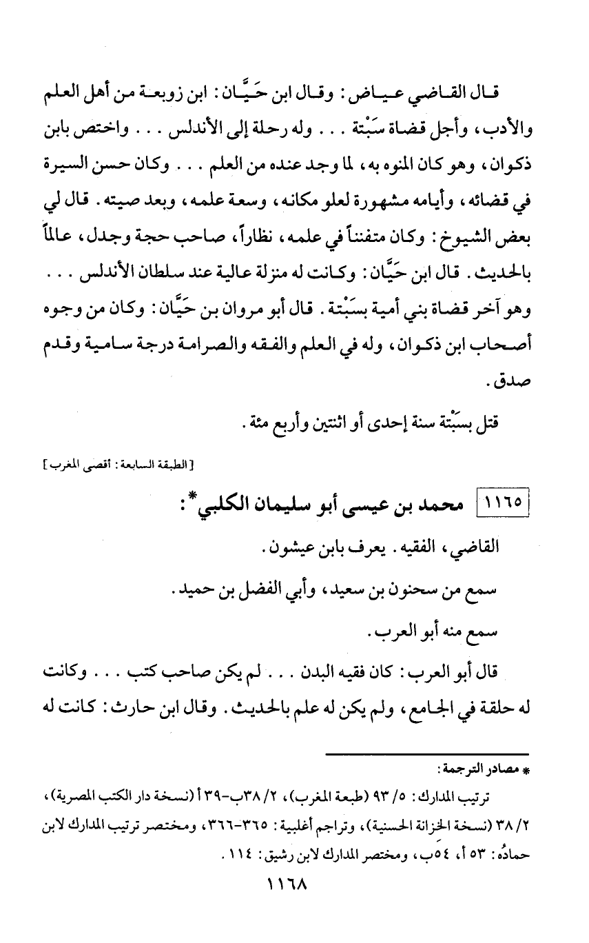 * مصادر الترجمة: ترتيب المدارك: 5/ 93 (طبعة المغرب)، 2/ 38 ب - 39 أ (نسخة دار الكتب المصرية)، 2/ 38 (نسخة الخزانة الحسنية)، وتراجم أغلبية: 365 - 366، ومختصر ترتيب المدارك لابن حماده: 53 أ، 54 ب، ومختصر المدارك لابن رشيق: 114.