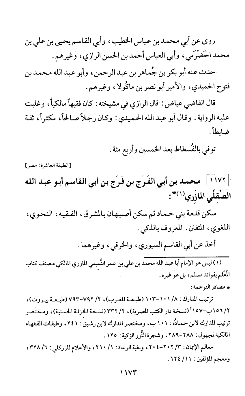 (¬1) ليس هو الإمام أبا عبد الله محمد بن علي بن عمر التّميمي المازري المالكي مصنف كتاب المعلم بفوائد مسلم، بل هو غيره.