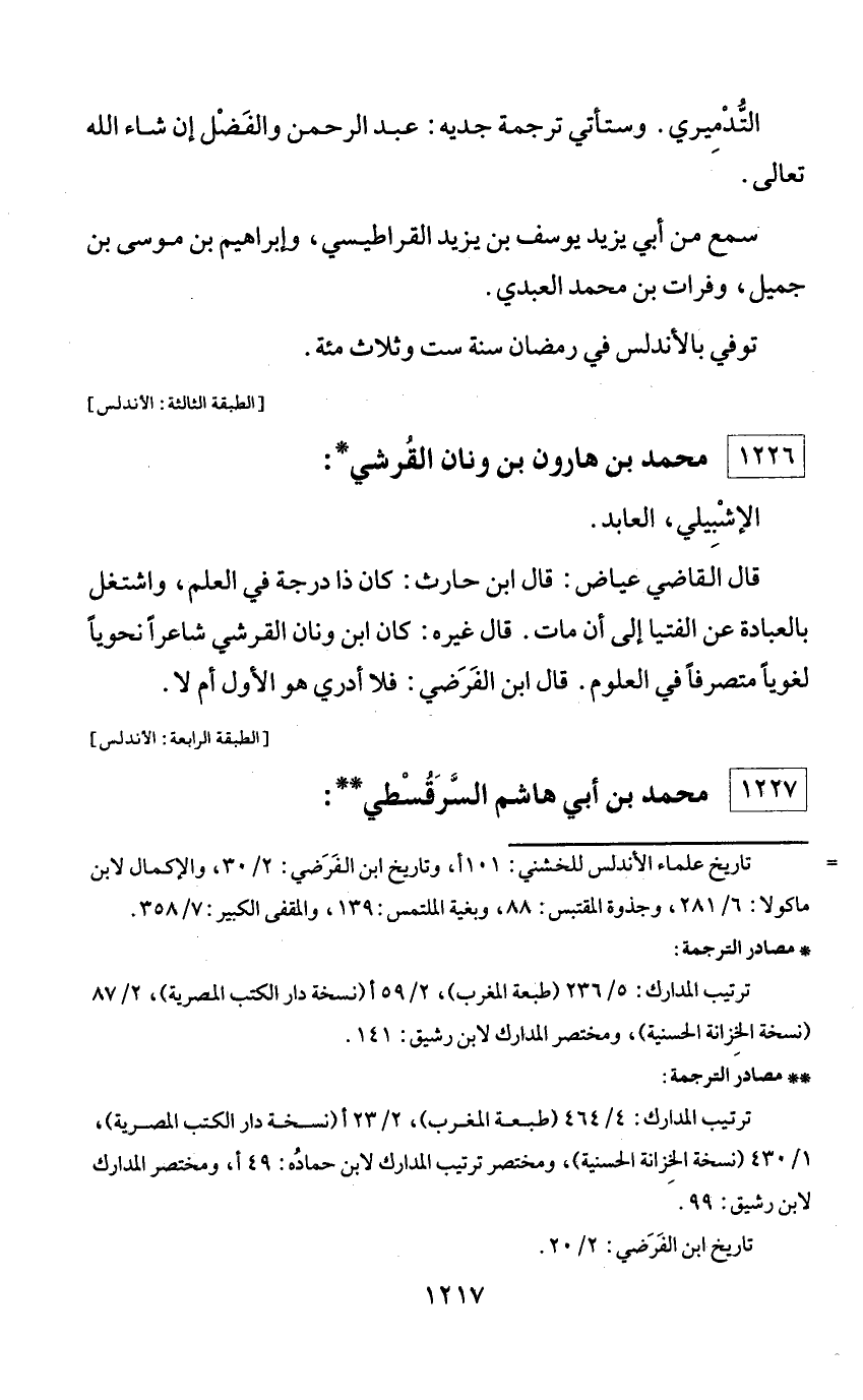** مصادر الترجمة: ترتيب المدارك: 4/ 464 (طبعة المغرب)، 2/ 23 أ (نسخة دار الكتب المصرية)، 1/ 430 (نسخة الخزانة الحسنية)، ومختصر ترتيب المدارك لابن حماده: 49 أ، ومختصر المدارك لابن رشيق: 99. تاريخ ابن الفرضي: 2/ 20.