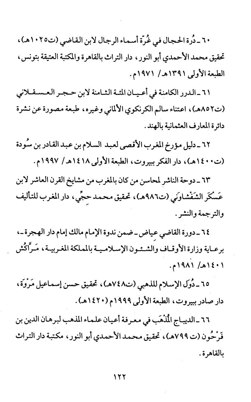 60 - درة الحجال في غرّة أسماء الرجال لابن القاضي (ت 1025 هـ)، تحقيق محمد الأحمدي أبو النور، دار التراث بالقاهرة والمكتبة العتيقة بتونس، الطبعة الأولى 1391 هـ/ 1971 م.