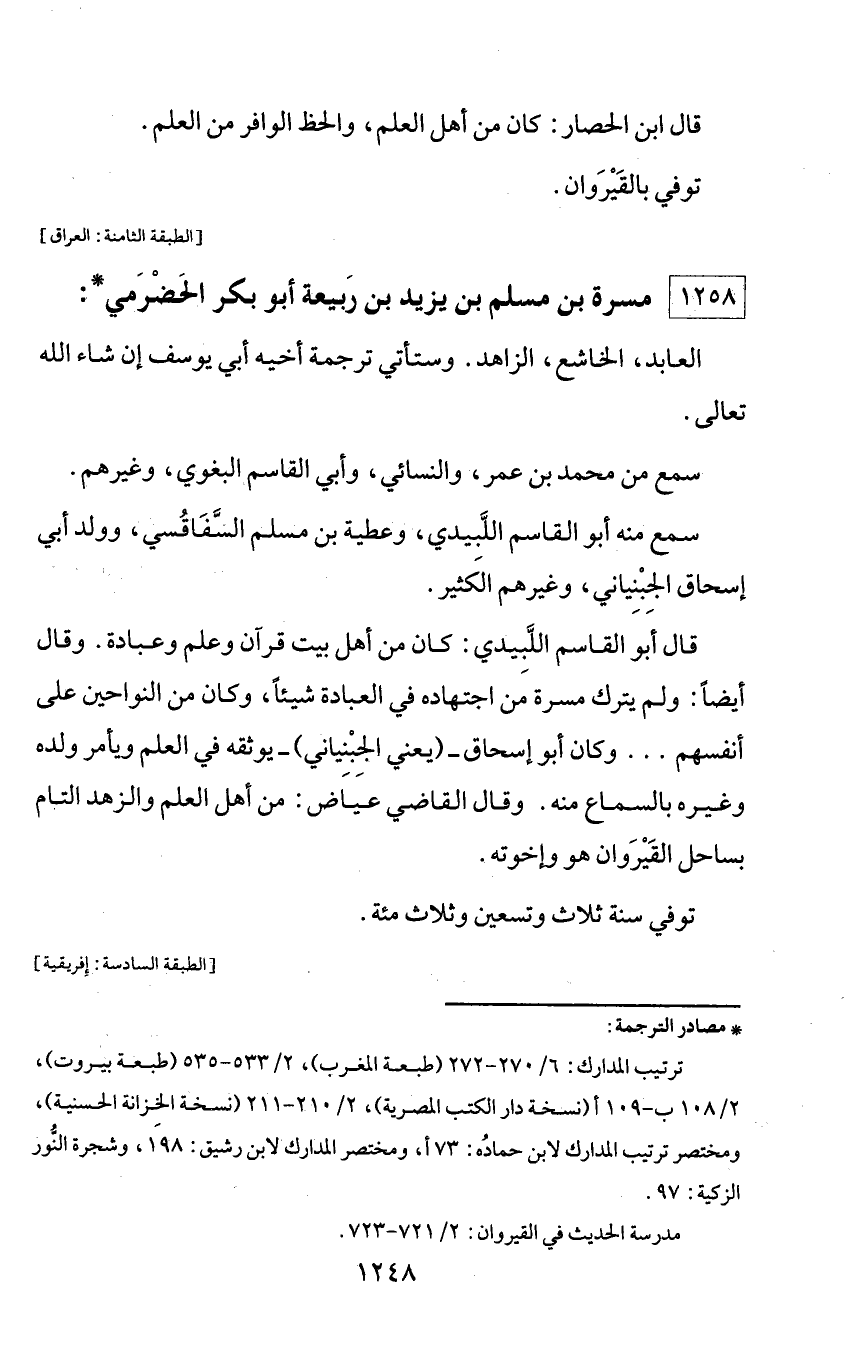 1258 - مسرة بن مسلم بن يزيد بن ربيعة أبو بكر الحضرمي *: