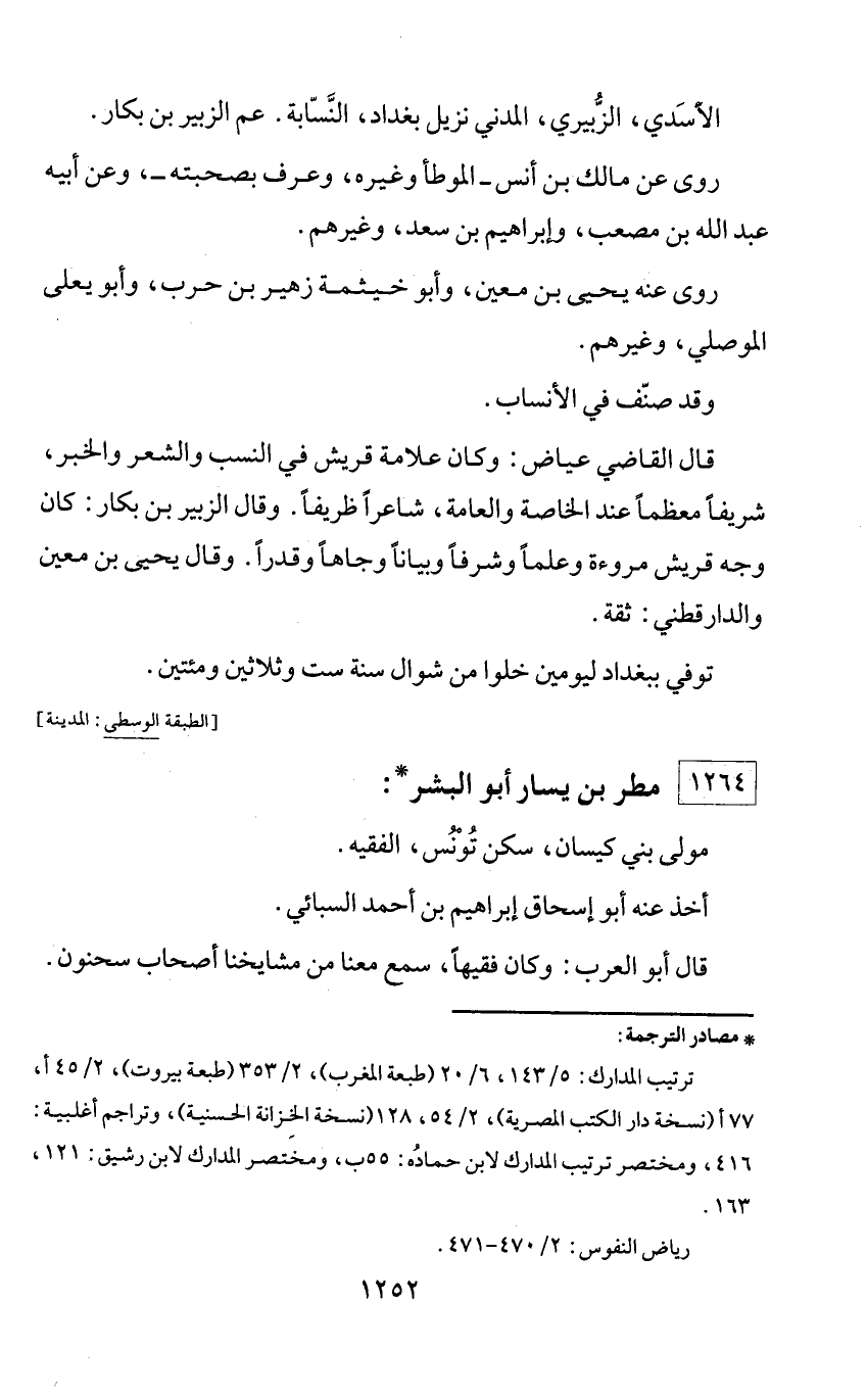 * مصادر الترجمة: ترتيب المدارك: 5/ 143، 6/ 20 (طبعة المغرب)، 2/ 353 (طبعة بيروت)، 2/ 45 أ، 77 أ (نسخة دار الكتب المصرية)، 2/ 54، 128 (نسخة الخزانة الحسنية)، وتراجم أغلبية: 416، ومختصر ترتيب المدارك لابن حماده: 55 ب، ومختصر المدارك لابن رشيق: 121، 163. رياض النفوس: 2/ 470 - 471.