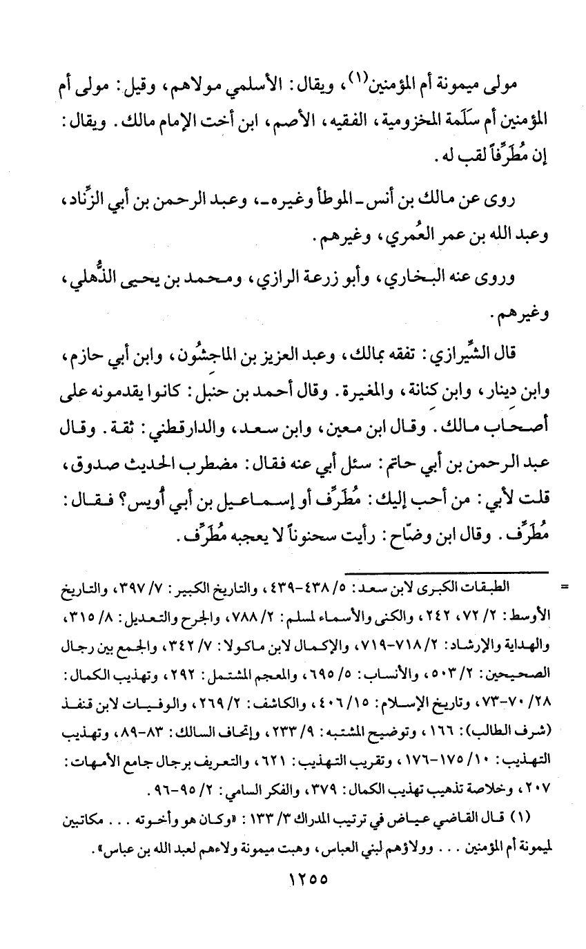 مولى ميمونة أم المؤمنين (¬1)، ويقال: الأسلمي مولاهم، وقيل: مولى أم المؤمنين أم سلمة المخزومية، الفقيه، الأصم، ابن أخت الإمام مالك. ويقال: إن مطرّفا لقب له.