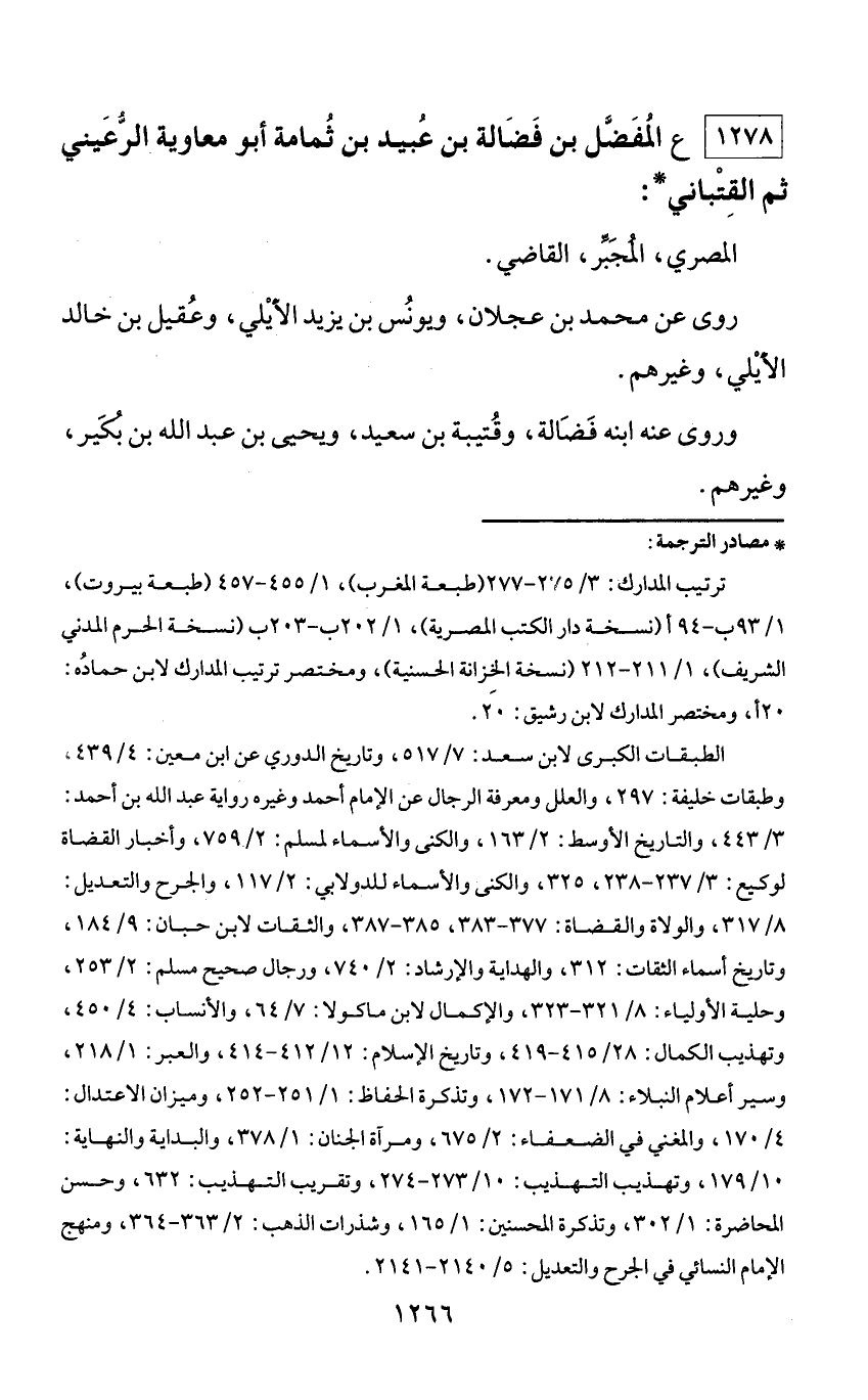 1278 - ع المفضّل بن فضالة بن عبيد بن ثمامة أبو معاوية الرّعيني