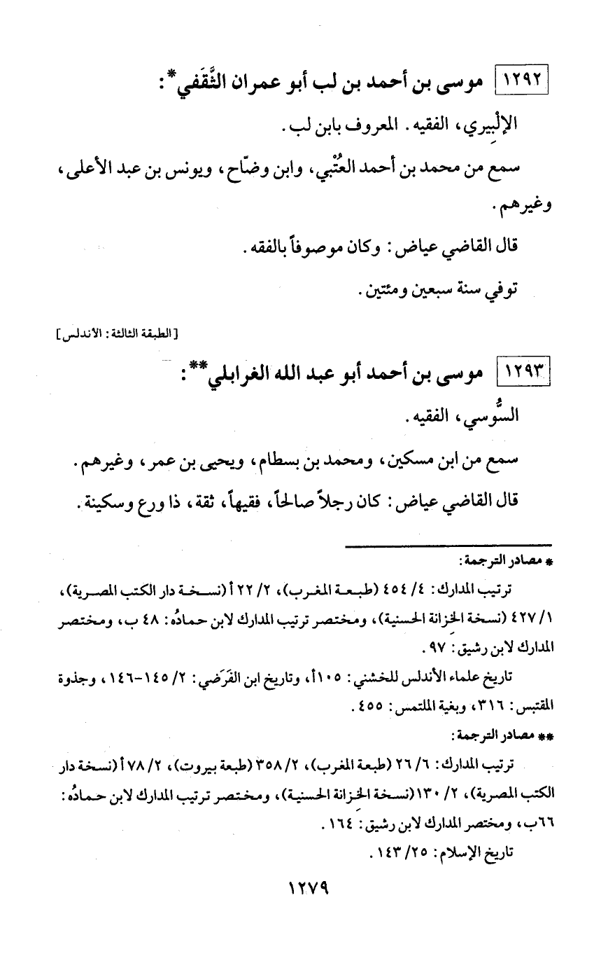 * مصادر الترجمة: ترتيب المدارك: 4/ 454 (طبعة المغرب)، 2/ 22 أ (نسخة دار الكتب المصرية)، 1/ 427 (نسخة الخزانة الحسنية)، ومختصر ترتيب المدارك لابن حماده: 48 ب، ومختصر المدارك لابن رشيق: 97. تاريخ علماء الأندلس للخشني: 105 أ، وتاريخ ابن الفرضي: 2/ 145 - 146، وجذوة المقتبس: 316، وبغية الملتمس: 455.