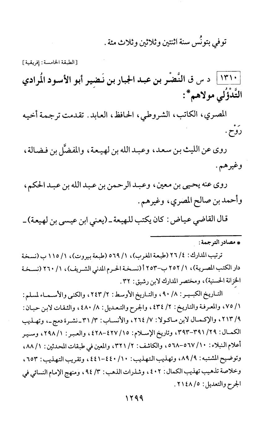 1310 - د س ق النّضر بن عبد الجبار بن نضير أبو الأسود المرادي