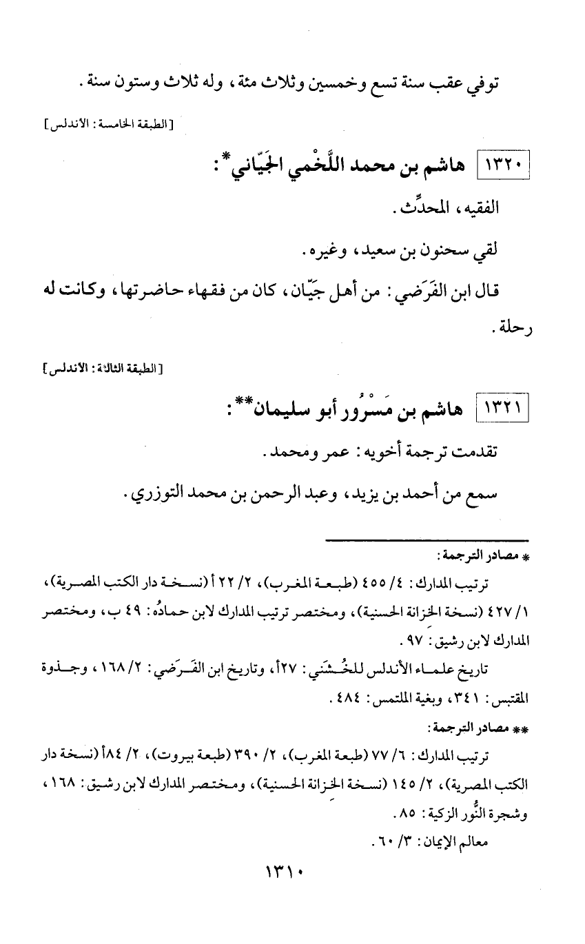* مصادر الترجمة: ترتيب المدارك: 4/ 455 (طبعة المغرب)، 2/ 22 أ (نسخة دار الكتب المصرية)، 1/ 427 (نسخة الخزانة الحسنية)، ومختصر ترتيب المدارك لابن حماده: 49 ب، ومختصر المدارك لابن رشيق: 97. تاريخ علماء الأندلس للخشني: 27 أ، وتاريخ ابن الفرضي: 2/ 168، وجذوة المقتبس: 341، وبغية الملتمس: 484.