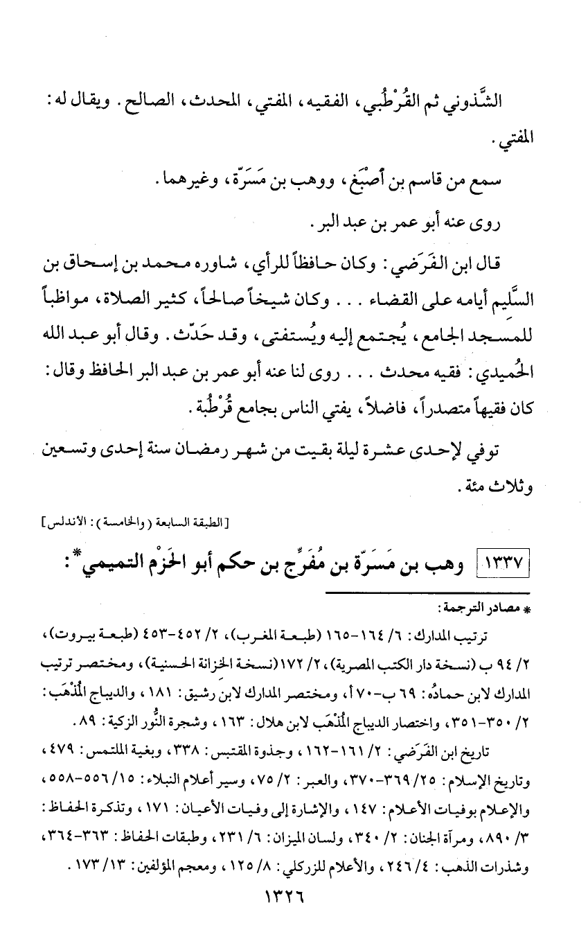 1337 - وهب بن مسرّة بن مفرّج بن حكم أبو الحزم التميمي *: