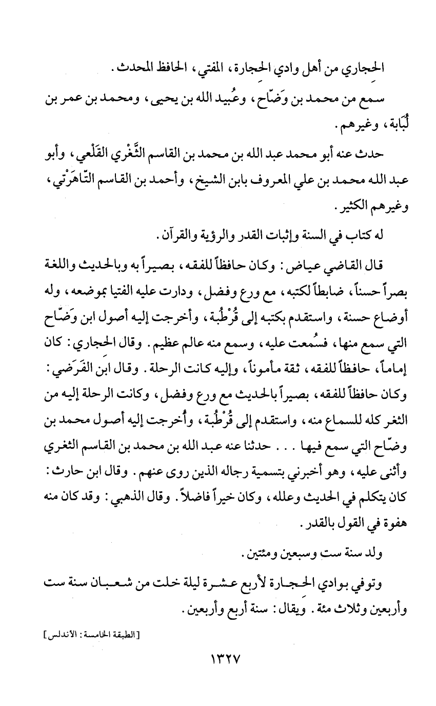الحجاري من أهل وادي الحجارة، المفتي، الحافظ المحدث.