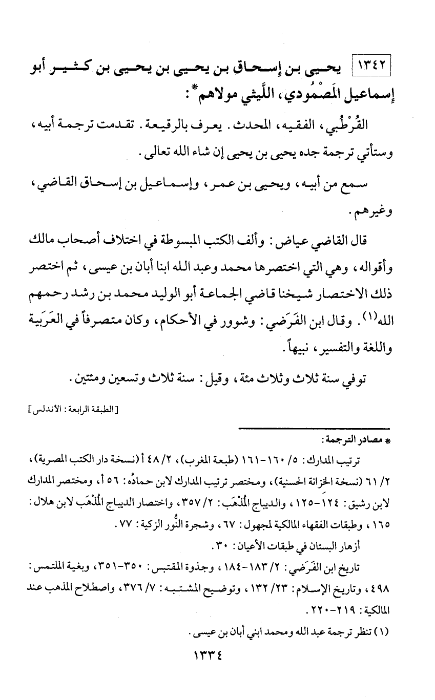 1342 - يحيى بن إسحاق بن يحيى بن يحيى بن كثير أبو