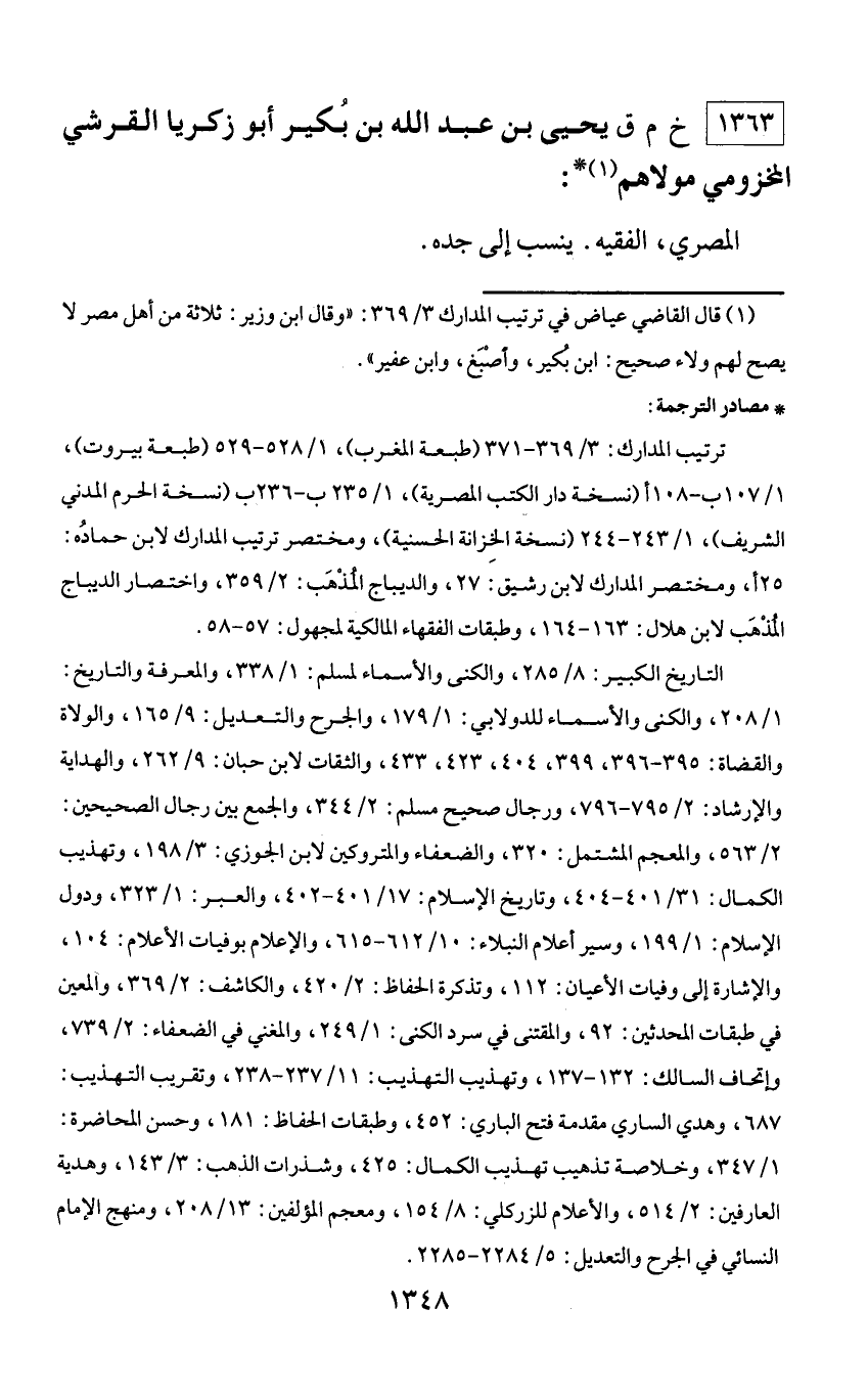 1363 - خ م ق يحيى بن عبد الله بن بكير أبو زكريا القرشي