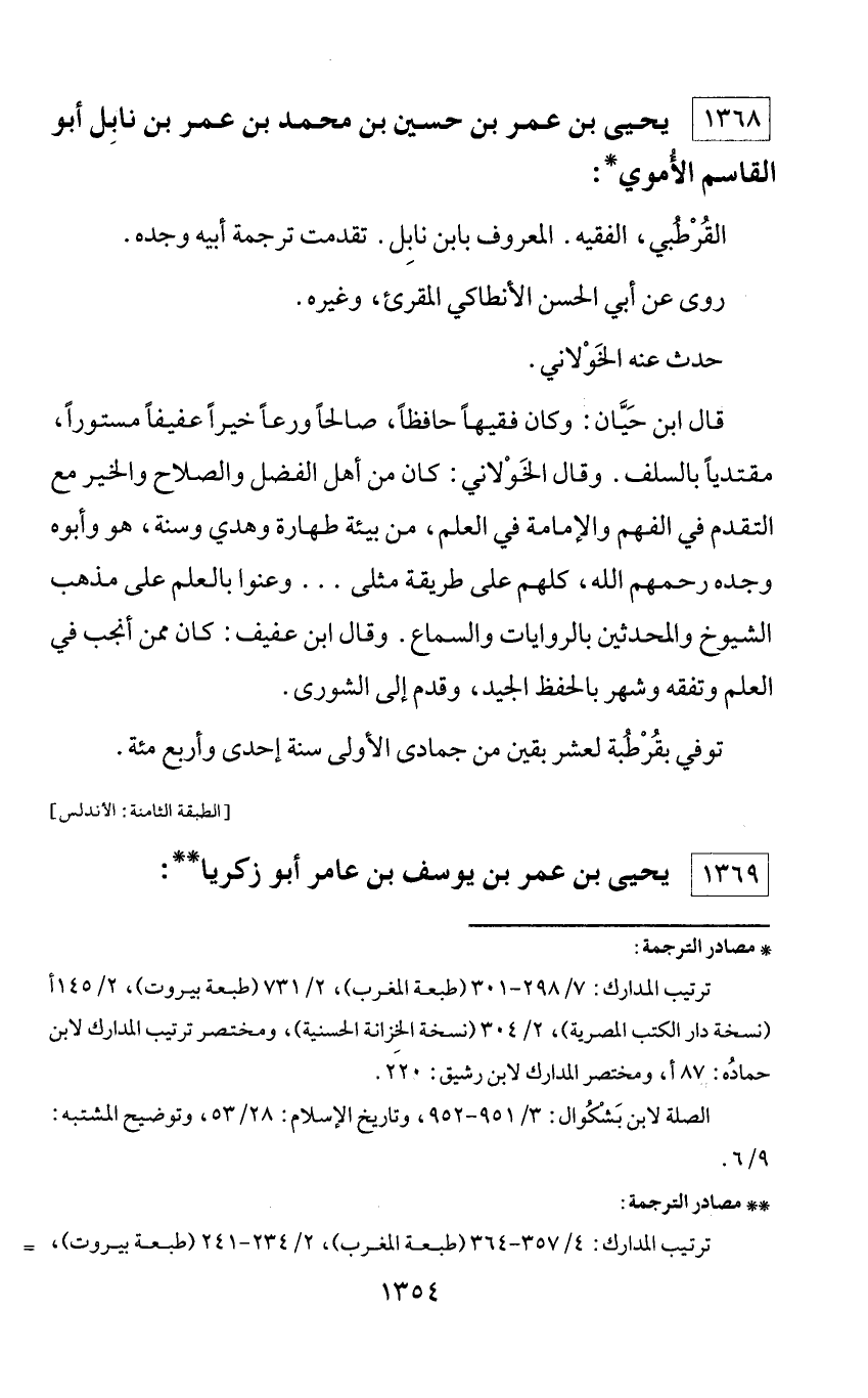 1369 - يحيى بن عمر بن يوسف بن عامر أبو زكريا **: