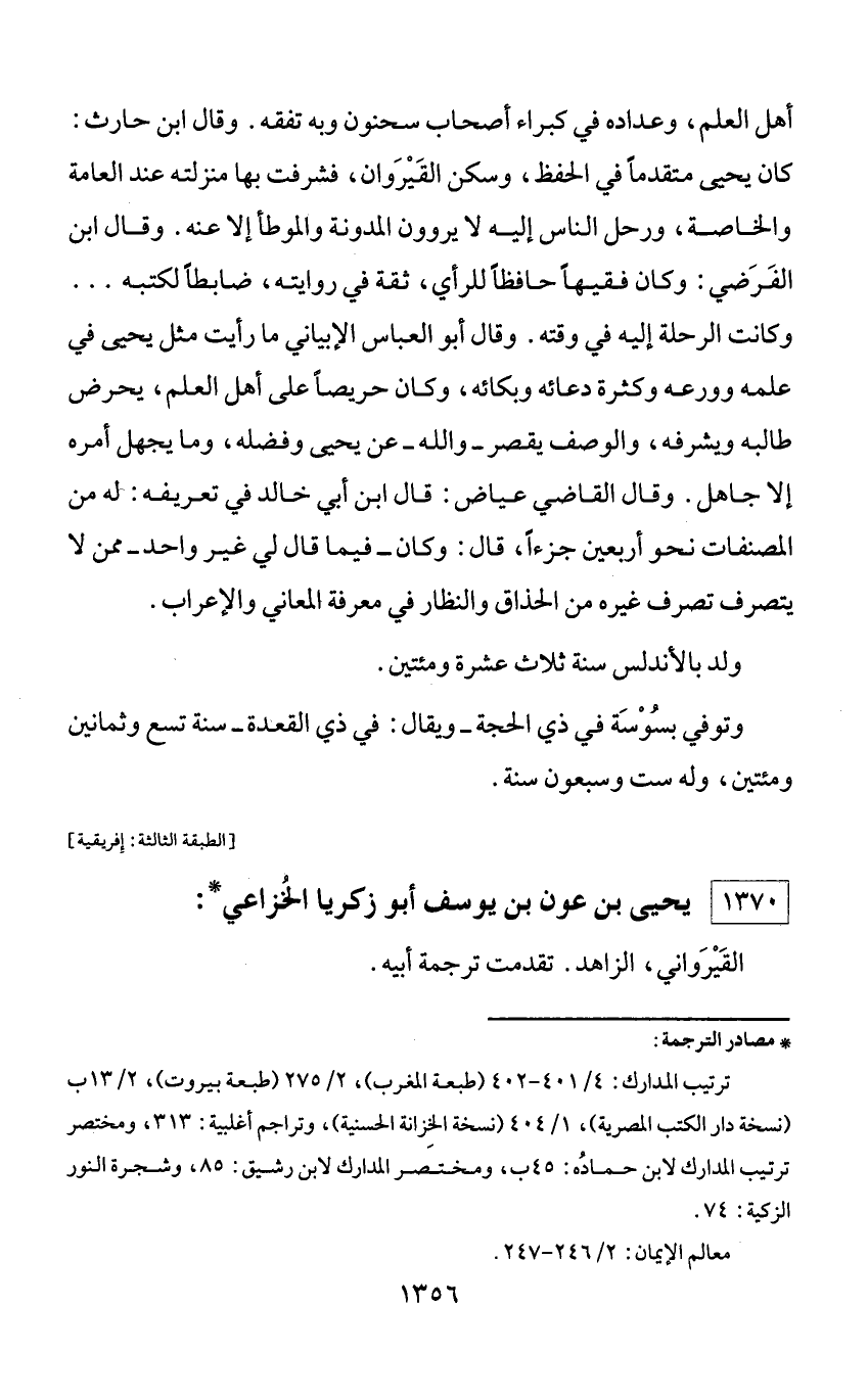 1370 - يحيى بن عون بن يوسف أبو زكريا الخزاعي *: