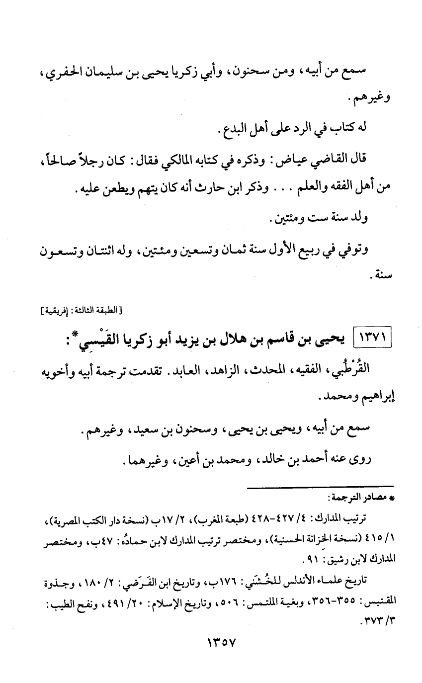 1371 - يحيى بن قاسم بن هلال بن يزيد أبو زكريا القيسي *: