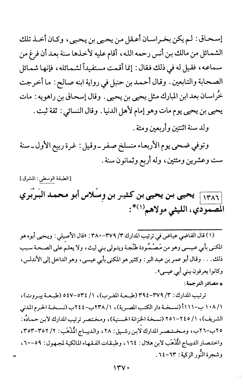1386 - يحيى بن يحيى بن كثير بن وسلاس أبو محمد البربري