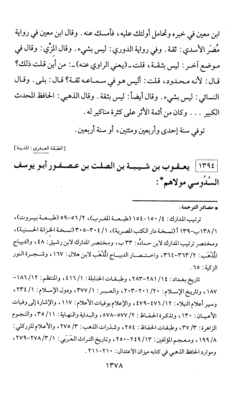 1394 - يعقوب بن شيبة بن الصلت بن عصفور أبو يوسف