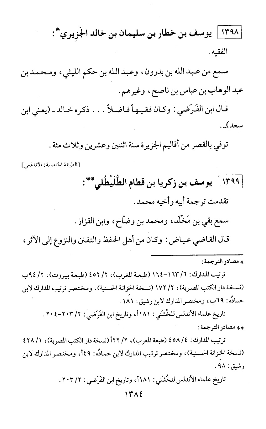** مصادر الترجمة: ترتيب المدارك: 4/ 458 (طبعة المغرب)، 2/ 22 أ (نسخة دار الكتب المصرية)، 1/ 428 (نسخة الخزانة الحسنية)، ومختصر ترتيب المدارك لابن حماده: 49 أ، ومختصر المدارك لابن رشيق: 98. تاريخ علماء الأندلس للخشني: 181 أ، وتاريخ ابن الفرضي: 2/ 203.