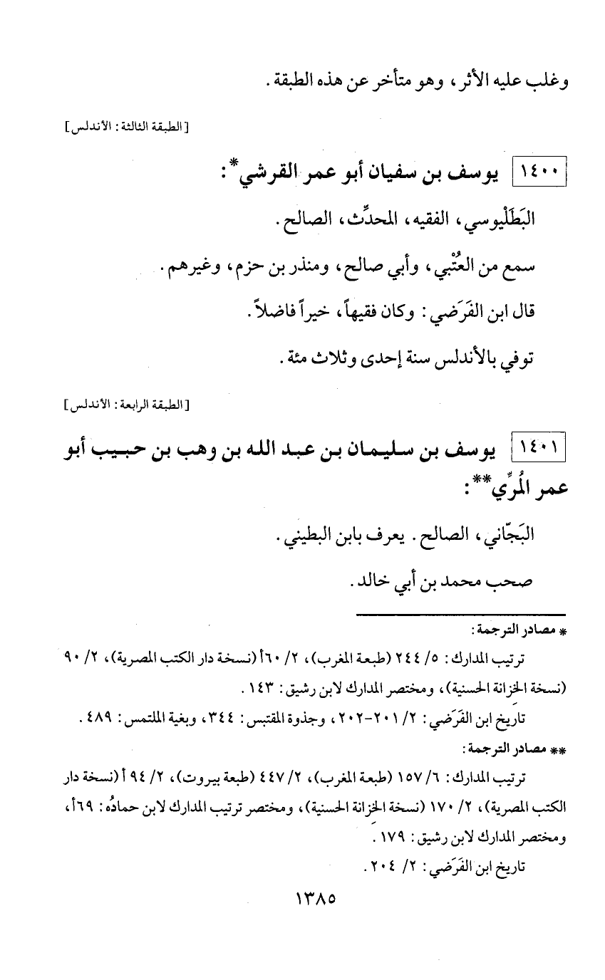 * مصادر الترجمة: ترتيب المدارك: 5/ 244 (طبعة المغرب)، 2/ 60 أ (نسخة دار الكتب المصرية)، 2/ 90 (نسخة الخزانة الحسنية)، ومختصر المدارك لابن رشيق: 143. تاريخ ابن الفرضي: 2/ 201 - 202، وجذوة المقتبس: 344، وبغية الملتمس: 489.