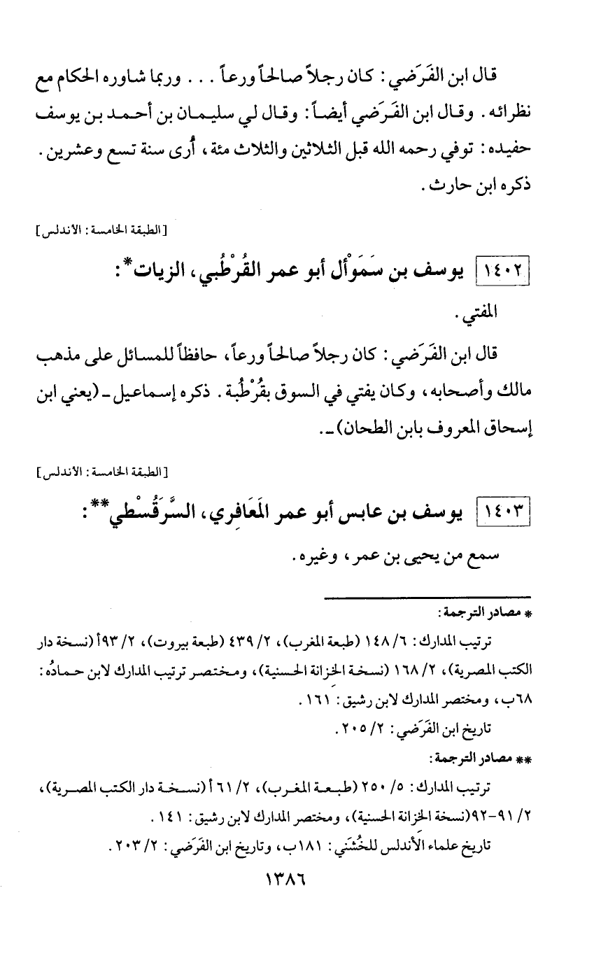 * مصادر الترجمة: ترتيب المدارك: 6/ 148 (طبعة المغرب)، 2/ 439 (طبعة بيروت)، 2/ 93 أ (نسخة دار الكتب المصرية)، 2/ 168 (نسخة الخزانة الحسنية)، ومختصر ترتيب المدارك لابن حماده: 68 ب، ومختصر المدارك لابن رشيق: 161. تاريخ ابن الفرضي: 2/ 205.