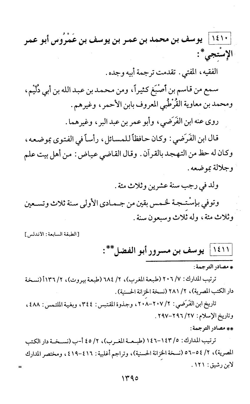 * مصادر الترجمة: ترتيب المدارك: 7/ 206 (طبعة المغرب)، 2/ 684 (طبعة بيروت)، 2/ 136 أ (نسخة دار الكتب المصرية)، 2/ 281 (نسخة الخزانة الحسنية). تاريخ ابن الفرضي: 2/ 207 - 208، وجذوة المقتبس: 344، وبغية الملتمس: 488، وتاريخ الإسلام: 27/ 296 - 297.