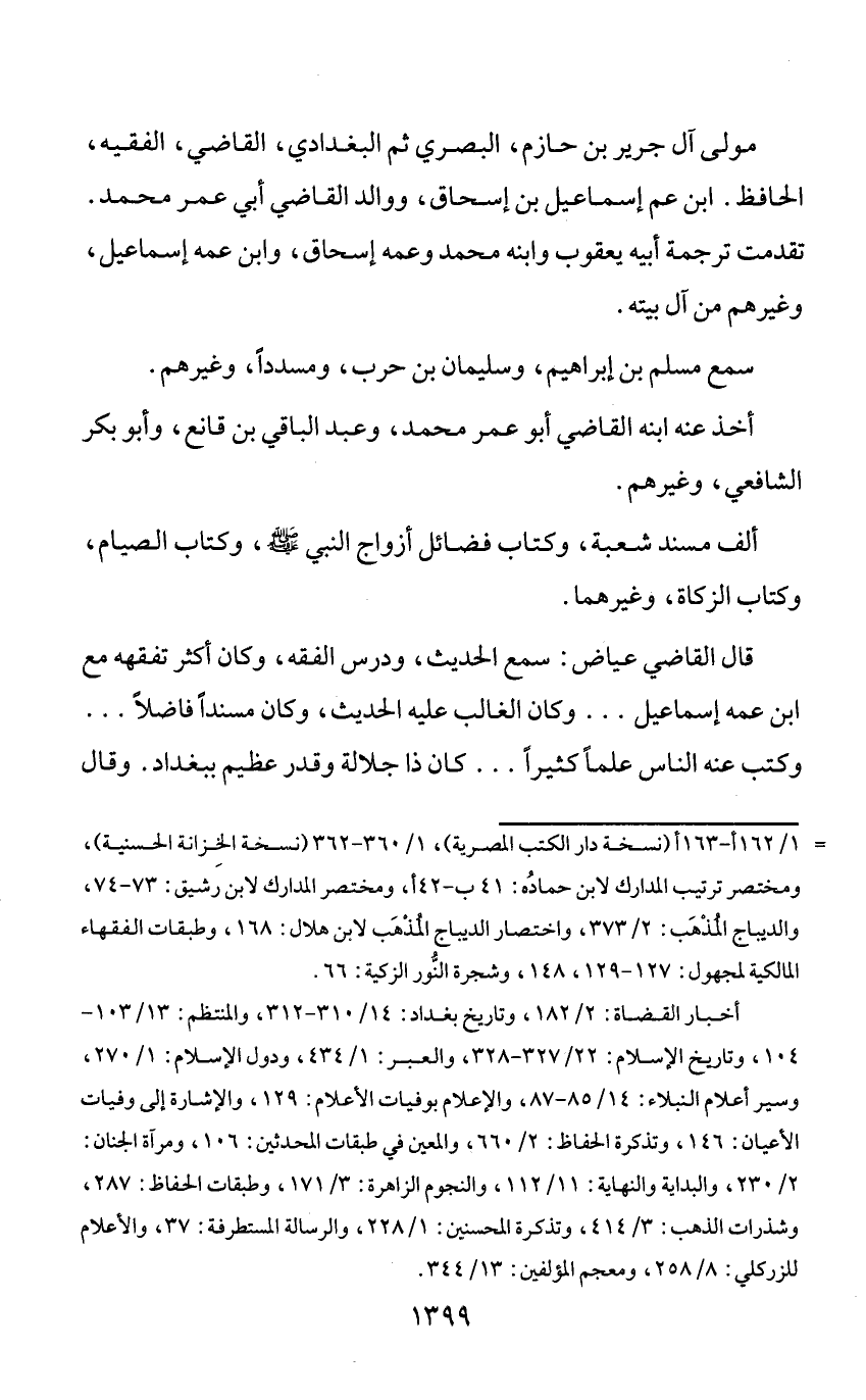 مولى آل جرير بن حازم، البصري ثم البغدادي، القاضي، الفقيه، الحافظ. ابن عم إسماعيل بن إسحاق، ووالد القاضي أبي عمر محمد.