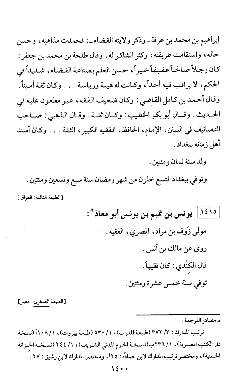 * مصادر الترجمة: ترتيب المدارك: 3/ 372 (طبعة المغرب)، 1/ 530 (طبعة بيروت)، 1/ 108 أ (نسخة دار الكتب المصرية)، 1/ 236 ب (نسخة الحرم المدني الشريف)، 1/ 244 (نسخة الخزانة الحسنية)، ومختصر ترتيب المدارك لابن حماده: 25 أ، ومختصر المدارك لابن رشيق: 27.